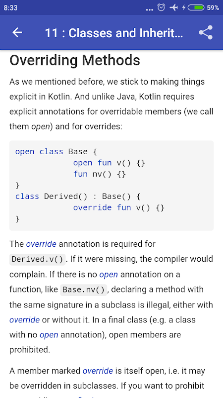 Vollständiger Offline- und einfache Tutorial App für Kotlin Programmiersprache.