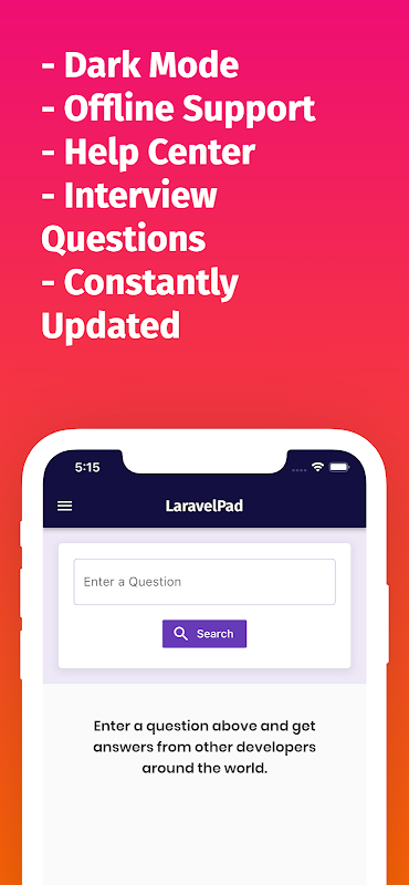 Diese App enthält alle wichtigen Themen von Laravel mit hervorragenden Codebeispielen. Mit seiner schönen Benutzeroberfläche und der leicht zu erlernenden Anleitung können Sie Laravel innerhalb weniger Tage lernen, und das unterscheidet diese App von anderen Apps. Wir aktualisieren diese App ständig mit jeder neuen großen Laravel-Version und fügen weitere Code-Snippets hinzu.