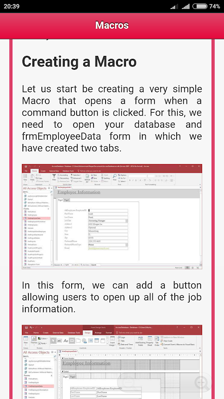 Diese App bietet für Schritt Tutorials Schritt einige grundlegende und erweiterte Funktionen in Microsoft Access zu lernen.