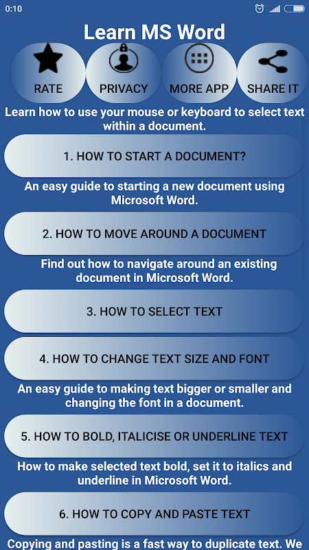 Thanks for using Learn MS Word (offline) Tutorial App! We Hope that you enjoy!