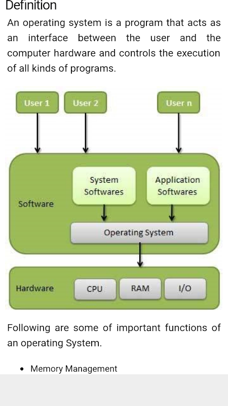An operating system (OS) is a collection of software that manages computer hardware resources and provides common services for computer programs. The operating system is a vital component of the system software in a computer system.This App will take you through step by step approach while learning Operating System concepts