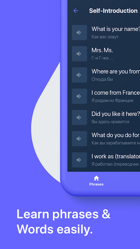 Learn Russian Offline: Speak fluently: is an android app to learn Russian phrases and words of various categories and from various base languages.