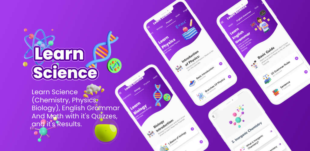 Lernen Sie Naturwissenschaften, Mathematik und englische Grammatik komplett offline.