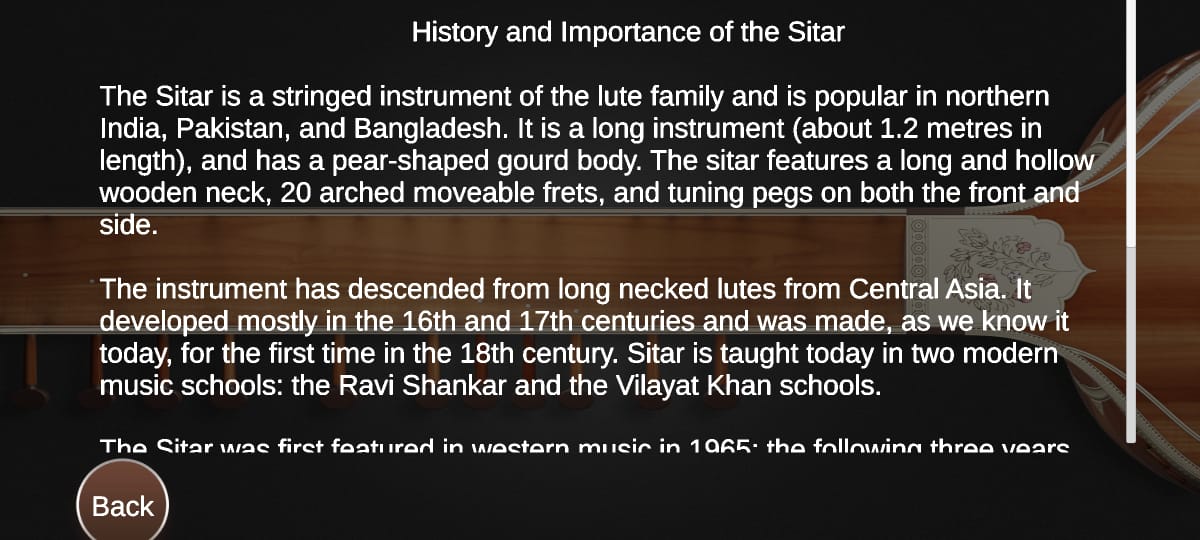 Diese App bietet eine minimale Version der Sitar mit einem interaktiven Spielerlebnis.
