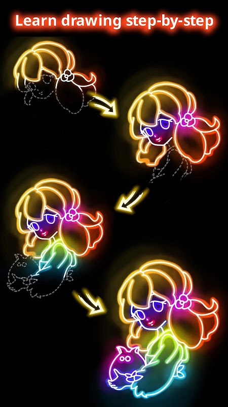 Zeichnen Sie mit leuchtenden Pinseln die schönen Prinzessinnenbilder!