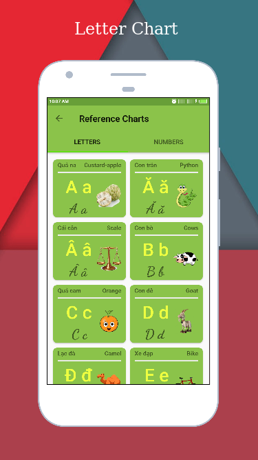 Mit der Anwendung lernen Sie, das vietnamesische Alphabet zu lesen und zu schreiben (vietnamesische Schrift, vietnamesische Silbe, vietnamesische Symbole, vietnamesische Buchstaben, vietnamesische Zeichen). Wenn Sie Vietnamesisch lernen möchten, müssen Sie zunächst fließend das Alphabet (Schrift, Silbe, Symbole, Buchstaben, Zeichen) beherrschen.