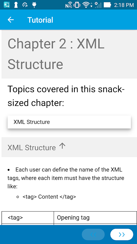 Sie haben nur eingeschränkten Zugriff auf die bereitgestellten Inhalte. Um vollen Zugriff auf den Inhalt zu erhalten, melden Sie sich bitte an und kaufen Sie diese Anwendung. Diese App bietet eine kurze Zusammenfassung der wichtigsten Konzepte in XML in den folgenden Kapiteln in Snackgröße: