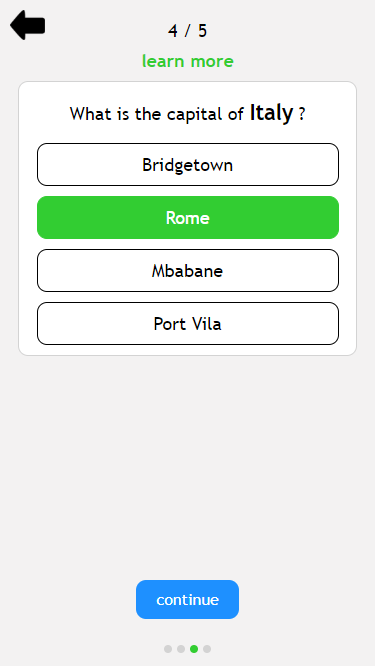 LearnIt - Geography is a learning platform that uses a special algorithm to memorize facts from geography, in particular: countries, capital cities and flags.