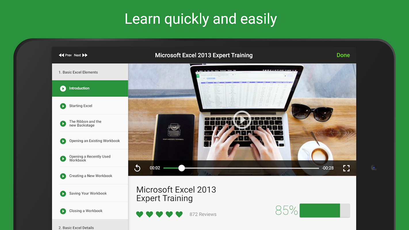 • Download-Kurse für die Offline-Anzeige und jederzeit lernen, überall