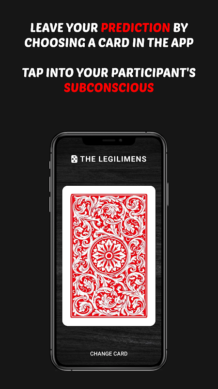 Die Magie mit LEGILIMENS ist spontan und kann auf verschiedene Arten vorgeführt werden. Ein Beispiel: Wählen Sie eine Karte in der App aus, ohne sie dem Teilnehmer zu zeigen. Führen Sie den Teilnehmer anschließend durch eine Reihe scheinbar harmloser Fragen, zum Beispiel nach seinen Vorlieben für Farben oder Zahlen. Zum richtigen Zeitpunkt enthüllt der Teilnehmer die Karte, an die er gedacht hat – und unglaublicherweise ist es dieselbe Karte, die Sie ausgewählt haben. Das Ergebnis ist eine perfekte Vorhersage, die alle zum Staunen bringt.