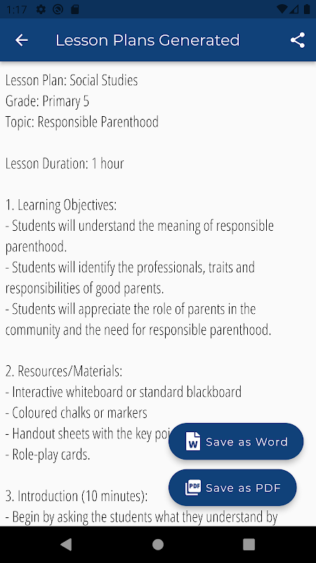 Mit der Unterrichtsplan-Generator-App können Sie Unterrichtspläne in zahlreichen Sprachen für Fachbereiche und Klassenstufen oder Klassen erstellen. Sie können den generierten Plan in anderen sozialen Netzwerken teilen und in Word und PDF speichern.
