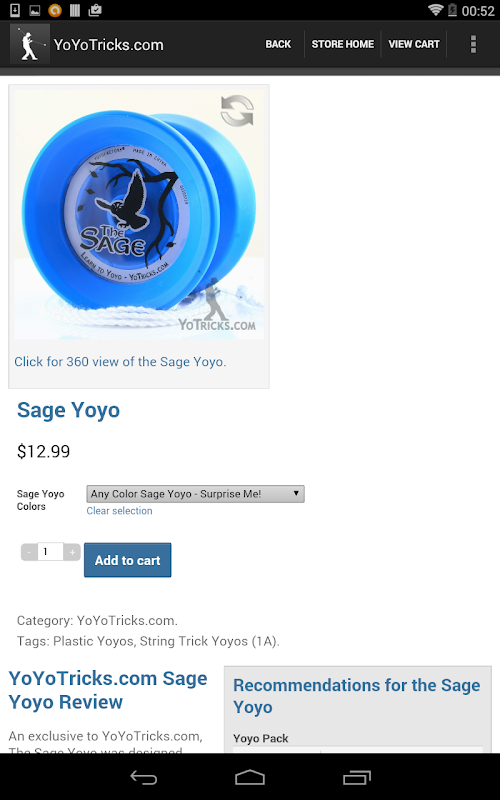 Mit der Android-App YoYoTricks.com können Benutzer jedes gewünschte YoYoTricks.com-Video schnell finden und live streamen. Videos enthalten auch Details zum empfohlenen Jojo, um den Trick zu lernen, und erleichtern Benutzern das Kaufen dieses Jojo und das Durchsuchen unseres Shops nach anderen Produkten. Benutzer können sich bei Level Up! um den Fortschritt zu verfolgen und zu planen, welche Tricks als nächstes zu lernen sind.