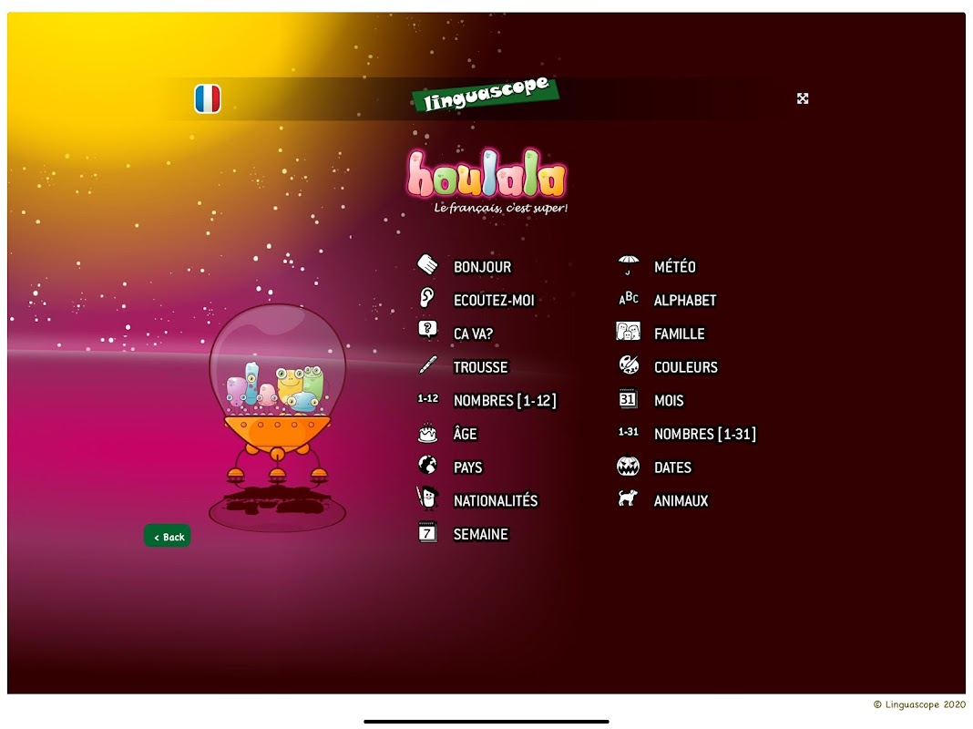 Genieße Linguascopes preisgekrönte Sprachmaterialien für die KS1 und KS2 auf deinem Android-Tablet. Folge freundlichen Außerirdischen durch zahlreiche themenbezogene Einheiten und lerne dabei Französisch, Deutsch, Italienisch, Spanisch oder Englisch!
