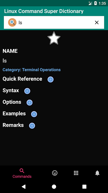 Diese App klassifiziert die Befehle auch in verschiedene Kategorien (Internet und Netzwerk, Terminalbetrieb, Service und Prozess, Benutzerberechtigung usw.). So können Sie je nach Betriebsbedürfnis neue Befehle leicht erlernen.