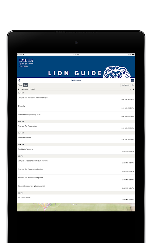 Loyola Marymount University's passport to Undergraduate Admission events. Explore the day's events with detailed schedules, maps, and other interactive features that will make your campus experience one to remember.