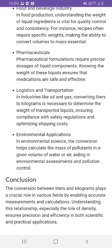 Liters to Kilograms to Liters 1.0