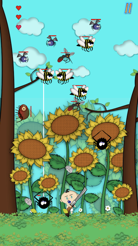 As you progress, various insects attack you, calling their leaders from time to time. Exciting levels, bosses, easter eggs and more await you.