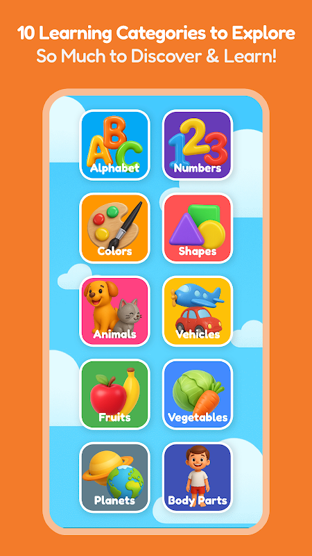 Little Learners Cards ist eine farbenfrohe Lernkarten-App für Kleinkinder und Vorschulkinder. Mit 10 ansprechenden Kategorien und lebendigen Illustrationen können Kinder Buchstaben, Zahlen, Tiere, Formen, Farben und mehr entdecken – alles in einer sicheren, kinderfreundlichen Umgebung.