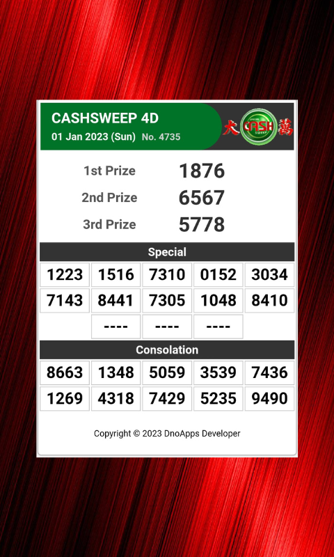 Singapore 4D Live Results beinhaltet: