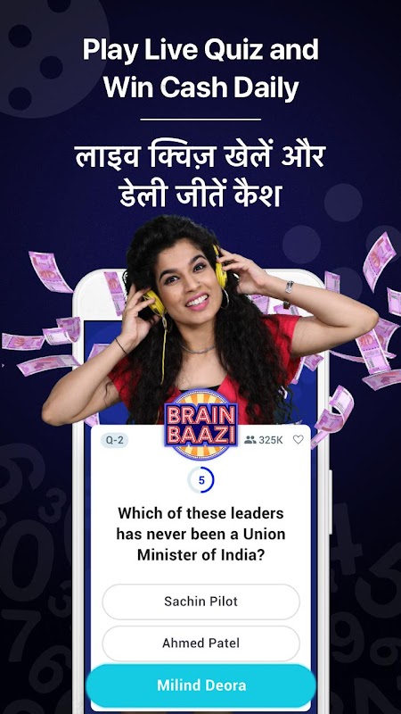 BrainBaazi ist eine der innovativsten Online-Quiz-Apps in Indien. Messen Sie sich mit Millionen von Spielern in einer Live-Quiz-Spielshow. Der Moderator stellt Fragen, die Sie richtig beantworten müssen, um den Geldpreis zu gewinnen.