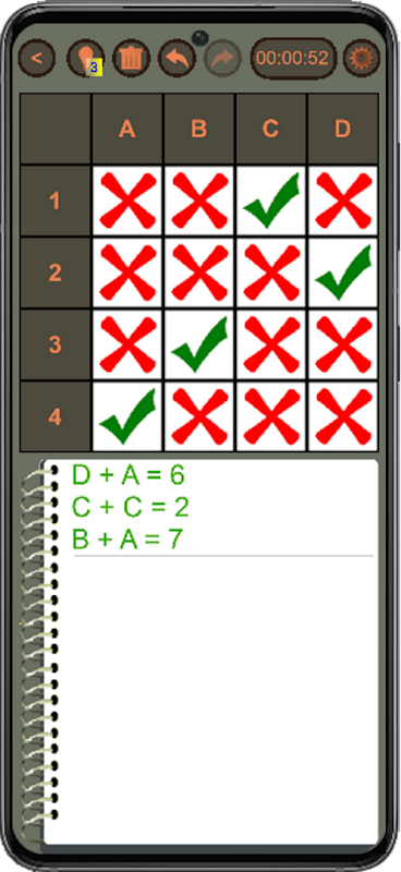 * Verwenden Sie das Raster, um anhand der Hinweise (Gleichungen und Ungleichungen) Beziehungen zwischen Variablen und Werten herzustellen: