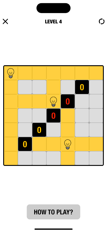 - Tippe auf ein Feld, um eine Glühbirne zu platzieren. Tippe erneut, um sie zu entfernen.