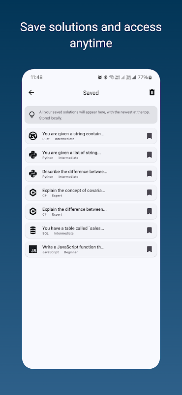 Von Experten entwickelte Lösungen: Greifen Sie auf optimierte Lösungen für jede Codierungsherausforderung zu. Lernen Sie von den Best Practices und effizienten Techniken, die von Experten eingesetzt werden, um Ihre Codierungseffizienz zu verbessern.