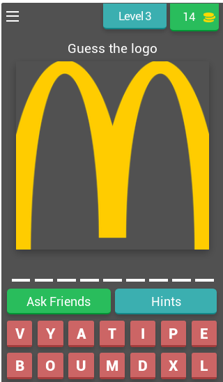 Logo Quiz ist ein lustiges Spiel mit vielen Levels, die es zu bestehen gilt.