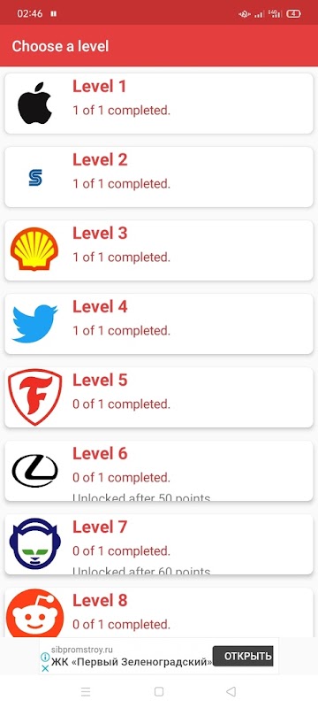 Logotype Quiz is an original quiz game in which the user will have to guess the brands of the world. Each question looks like a picture with a large company logo. Your task is to name the brand correctly. The game contains thousands of puzzles. All puzzles are distributed over different levels. There are some helpful tips.
