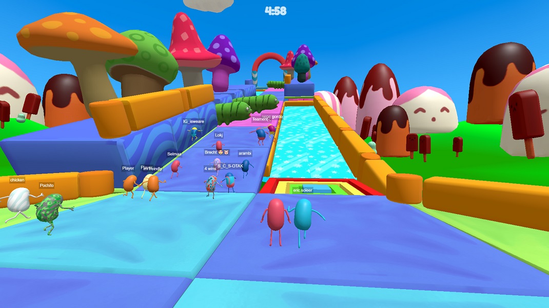 Race against the clock through tricky obstacle courses. Each round eliminates players who don’t reach the end in time. If you get to the end, you qualify for the next round. In the final round, only one bean can be the victor.