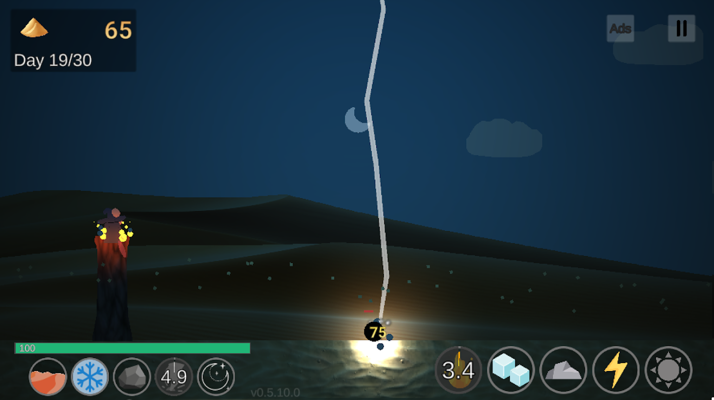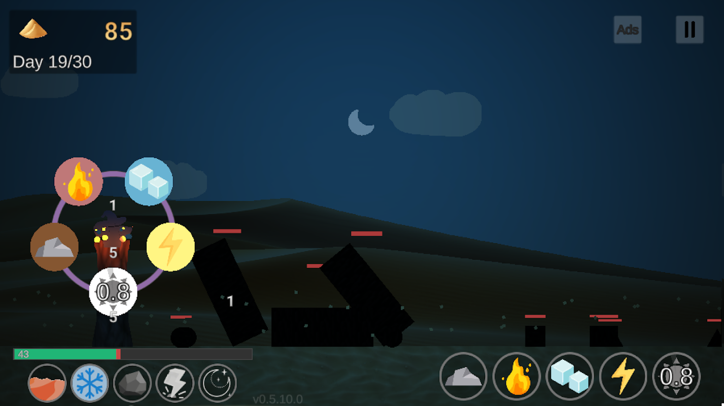 Verteidige deinen Turm nachts mit deiner Magie vor Feinden und sammle deren Sand für mehr Alchemie.