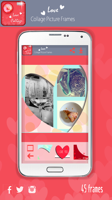 Laden Sie dieses fabelhafte kostenlose Foto-Collage-Software und verbessern Sie Ihre Fotos in ein paar Sekunden. Nehmen Sie sich einige Bilder und selfies mit der Liebe Ihres Lebens und machen Sie die schönsten Valentinsgrußkarten und überraschen Sie Ihre Honig wie nie zuvor. Liebe Fotocollage Bilderrahmen App wird Ihnen helfen, Ihre Gefühle in der bestmöglichen Art und Weise zum Ausdruck bringen. Es ist schön zu wissen, dass diese romantische Fotorahmen kann sagen "Ich liebe dich" anstelle von Ihnen, und machen Sie in der Liebe mehr und mehr jeden Tag fallen.
