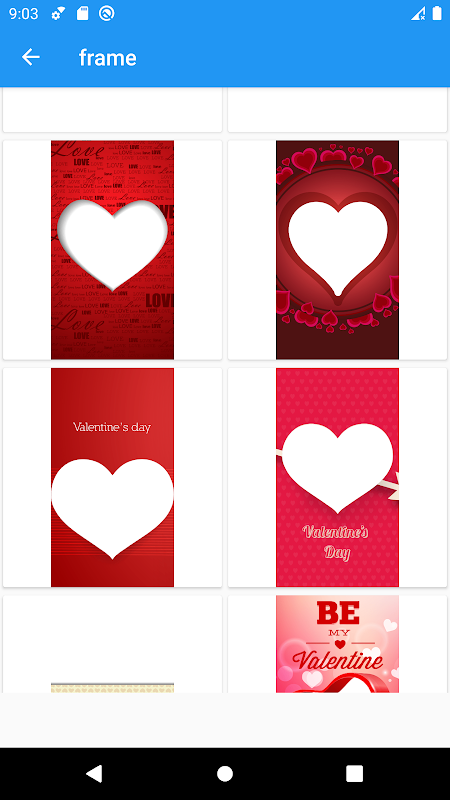 Zeigen Sie Ihren Lieben, wie romantisch Sie mit Hilfe von Liebesromantik-Fotorahmen sind, und machen Sie sie jeden Tag glücklich mit romantischen Liebesrahmen für Fotos. Erstellen Sie trendige Fotoraster- oder Bilderrahmen-Fotocollagen mit Liebesbilderrahmen Ihrer Freundin oder Ihres Freundes und lassen Sie sich von romantischen Fotocollagen Ihr Liebesalbum zeigen. Die Leute halten es für unterhaltsam, Bilderrahmen oder Bildcollagen für ihre Lieben zu erstellen und die besten Liebesrahmen für Fotos hinzuzufügen. Vielleicht finden Sie all diese romantischen Rahmen und Bilder mit Bilderrahmen zu einfach, aber wenn Sie keine Zeit für die Fotobearbeitung haben, schauen Sie sich einfach unsere schöne Bilderrahmen-App-Sammlung an. Wir haben alles, was Sie brauchen, um Ihren romantischen Fotorahmen und Bildcollagenmacher den seltenen Teil hinzuzufügen. Wählen Sie die besten Fotorahmen aus, die Ihnen gefallen, und verbringen Sie nur wenige Minuten mit der Erstellung Ihrer romantischen Fotos. Dekorieren Sie Ihre Bilderrahmen mit diesen unglaublichen Bilderrahmen für Fotos. Wählen Sie ein Foto aus der Galerie aus und wenden Sie dann das gewünschte romantische Rahmenfoto an. Sie können das Bild speichern oder in soziale Netzwerke hochladen. Sie können Ihre Liebesfotos und Fotocollage-Hersteller mit verschiedenen Formen auf Liebesalbum-Hintergründen hinzufügen. Wir führen aussagekräftige Liebeszitate zu den besten Fotorahmen und Bildcollagenherstellern ein, um Liebesrahmen für Fotos mit Ihren Lieben zu teilen.