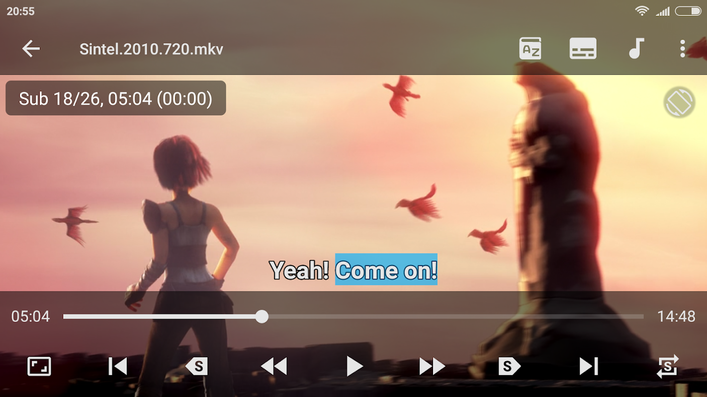 - Möglichkeit, zum nächsten, vorherigen oder aktuellen Untertitel zu wechseln (mit Doppeltippen oder mit Tasten)