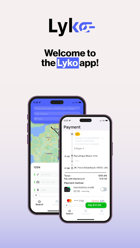 LYKO ist die ideale Reiseanwendung zur Planung und Buchung all Ihrer Reisen über eine einzige Schnittstelle! Reisen Sie beruhigt dank des intermodalen Echtzeit-Routenplaners, der Ihre täglichen oder gelegentlichen Fahrten vereinfacht. Wählen oder kombinieren Sie je nach Bedarf mehrere Transportmittel: