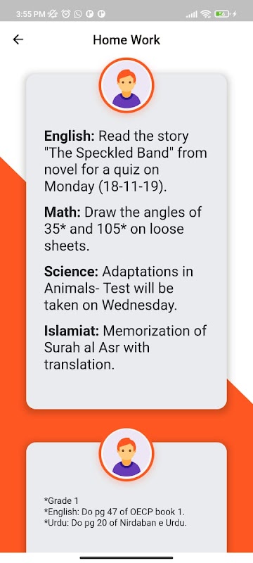 the parent can see all his attendance, see new notices , exam results , homework , Time table , Fee challans , events etc.
