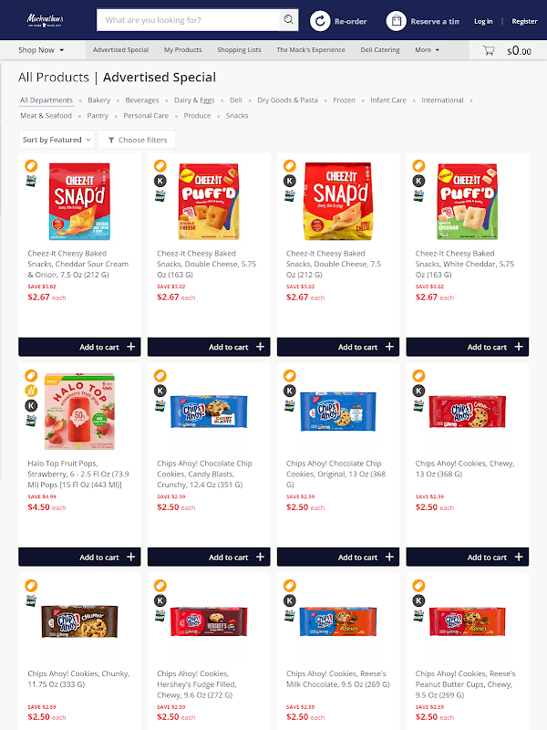 Bestellen Sie Lebensmittel noch am selben Tag bei Mackenthun’s Fine Foods und erhalten Sie die gleichen Preise wie im Geschäft, einschließlich aller Ausverkäufe und Sonderangebote. Nutzen Sie Ihre Rewards Card für noch mehr Vorteile.