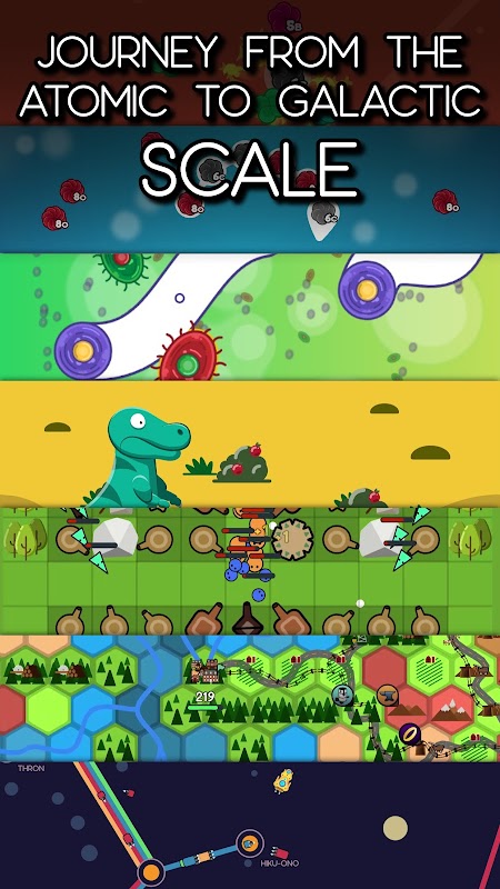 Come explore the Macrocosm, growing from atom to galactic empire along the way! Macrocosm features seven interconnected game stages that give you seven times the bang for your buck. By making progress in each stage you give yourself a boost in the next. Switch between unlocked stages at any time and see how you stack up at figuring out the fastest path on the leaderboard!