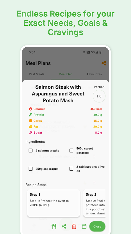 Nie wieder die Ideen für Mahlzeiten ausgehen – Schluss mit dem Scrollen durch sich wiederholende Rezepte, begrenzten Datenbanken oder dem Durchforsten von Food-Blogs. Unsere KI erstellt endlose, personalisierte Mahlzeitenpläne basierend auf Ihren Ernährungsbedürfnissen, Zielen und Gelüsten, damit Sie inspiriert bleiben und Ihre Ziele erreichen.
