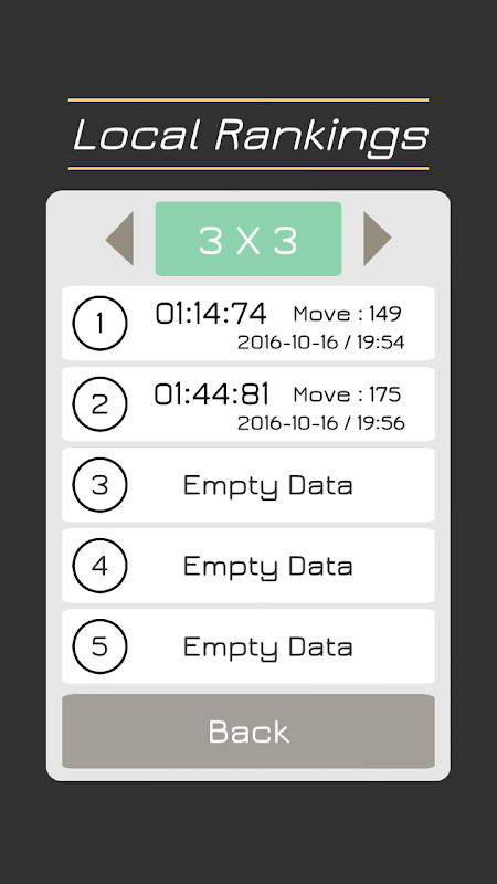 Wenn Sie den Zauberwürfel vollenden, werden Ihre Daten innerhalb Ihres Mobiltelefons in ‘SaveFile’ und “Leaderboard’ gespeichert.