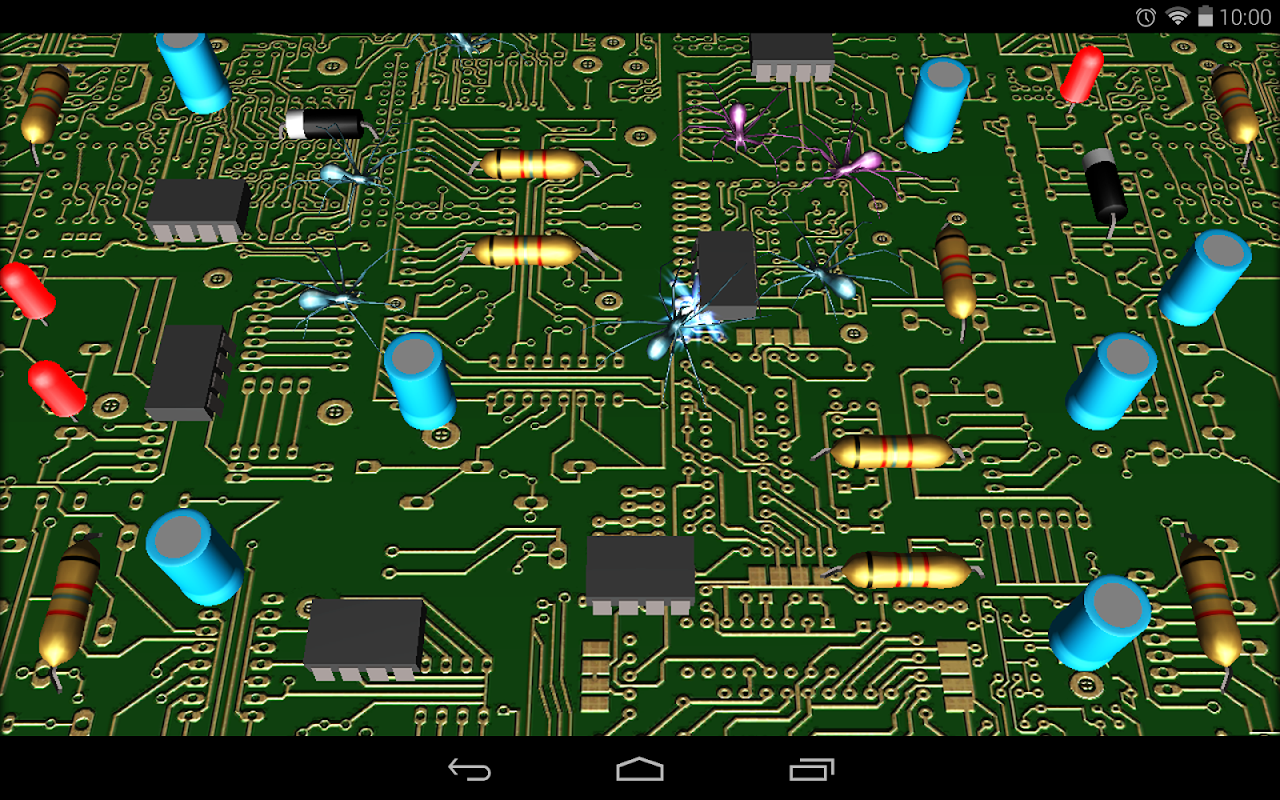 Magic Touch electronic components in a sequence, and see how the bugs change their path continuously using artificial intelligence, in order to attack the last target. A good way to create a horde... Experiment with your Magic Touch on different layouts and see how the bugs behave!