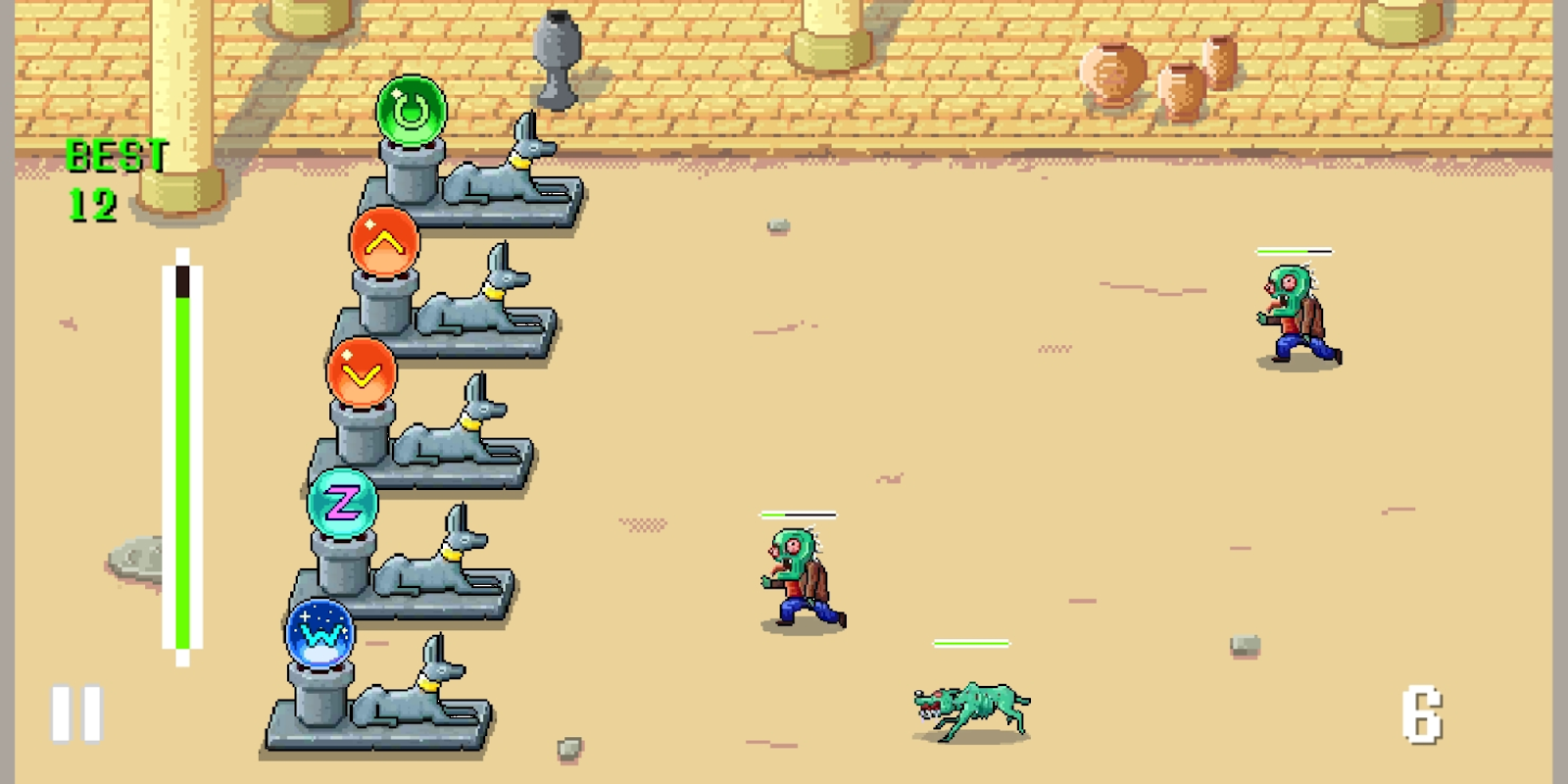 Sei vorsichtig, lass keine Zombies sich den Statuen nähern, sonst wirst du zerstört.