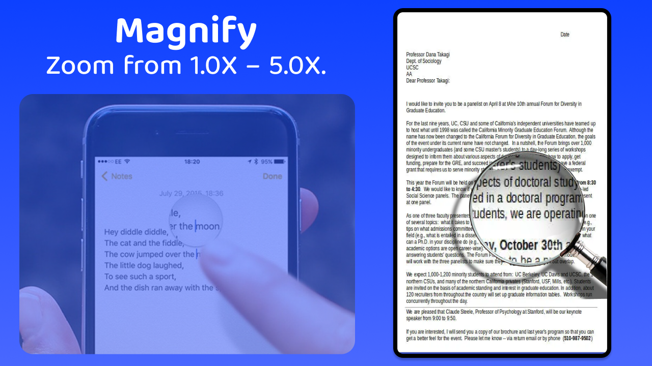 Die App nutzt die Kamera Ihres Telefons, um Text oder alles, was Ihnen in den Sinn kommt, zu vergrößern