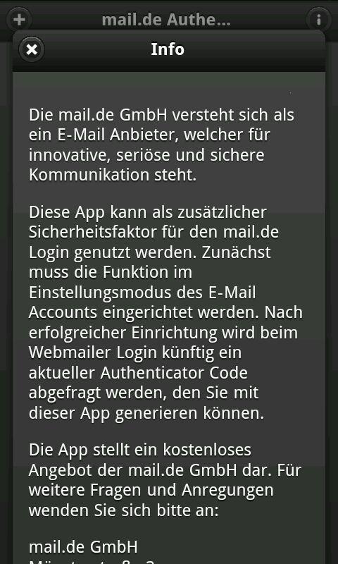 Weitere Informationen befinden sich in unserer Hilfe: https://mail.de/hilfe/authenticator