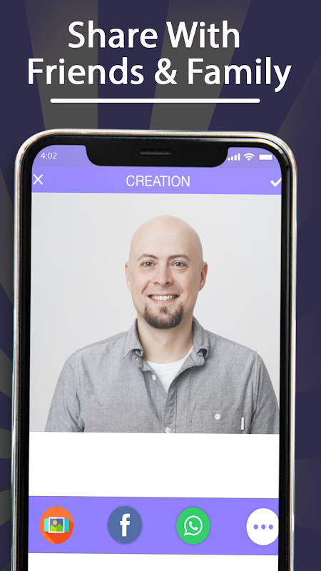 Haben Sie eine Glatze oder eine glatt rasierte Frisur und sehen Sie wirklich cool aus! Rasieren Sie Ihren Kopf und Ihren Bart und sehen Sie 20 Jahre jünger aus, indem Sie den Editor für halbkahle Haare verwenden! Oder platzieren Sie Männerfrisuren-Aufkleber für Bilder und ändern Sie Ihr Aussehen komplett! Also beeilen Sie sich, laden Sie einfach die Bald Photo Editor App herunter und bringen Sie Aufkleber und Effekte auf Ihrem Haar an und werden Sie in Sekundenschnelle kahl und Sie können genau sehen, wie Sie nach der Glatze aussehen, indem Sie die Glatzkopf-App für Frauen verwenden.