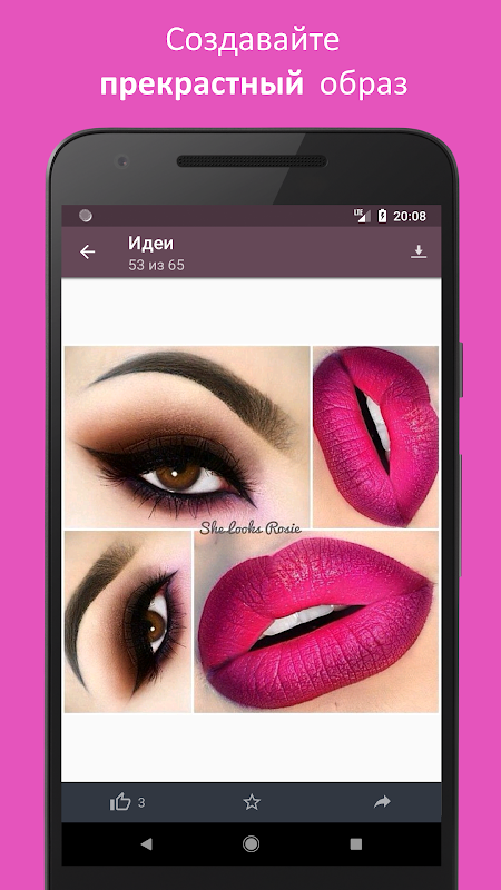 Приложение содержит уроки макияжа на любой вкус, здесь вы найдете повседневный макияж и узнаете как сделать макияж на вечер или праздничный макияж. Научитесь подбирать макияж под различные времена года, наряды и празники.