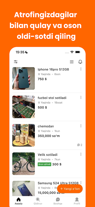 Atrofingizdagilar bilan qulay, xavfsiz va oson oldi-sotdi qiling!