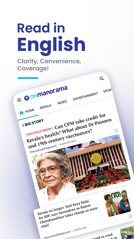 • Nachrichten auf Englisch und Malayalam verfügbar