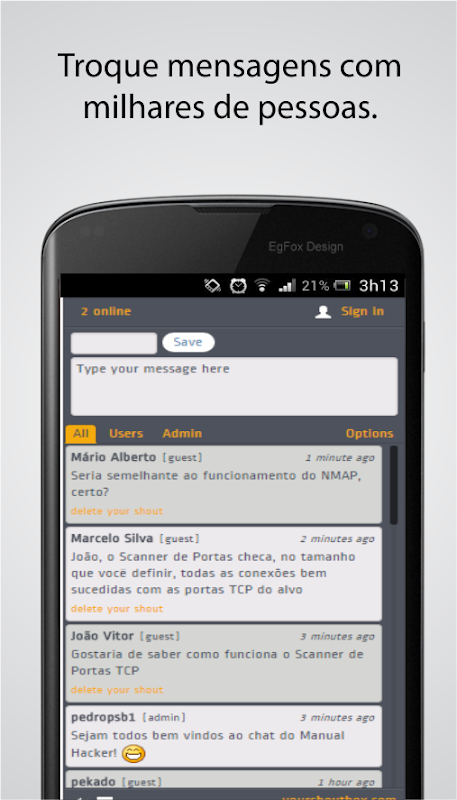 O Manual Hacker também conta com um Feed de Notícias sobre Segurança e Tecnologia com diversos portais e também um chat para promover a interação entre os usuários.