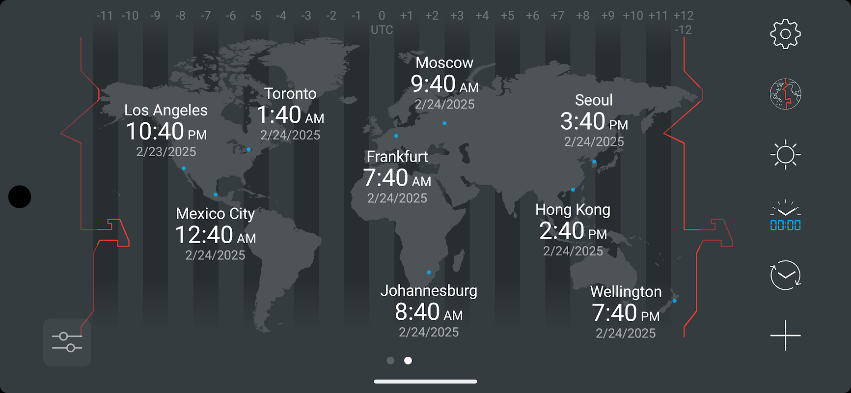 Mit map:clock können Sie die aktuelle Zeit für Großstädte und Zeitzonen auf einer Weltkarte verfolgen.